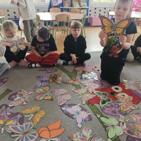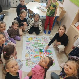 Jak to jest słyszeć „mocniej” lub widzieć świat „bardziej”? O tym rozmawialiśmy podczas Dnia Świadomości Autyzmu. Nasze przedszkolaki dowiedziały się, że spektrum autyzmu ma wiele twarzy, a osoby nim objęte mogą potrzebować więcej wsparcia w relacjach lub innej formy komunikacji. Analizując losy słynnych odkrywców i sportowców (m.in. Edisona i Messiego), dzieci zrozumiały, że neuroróżnorodność bywa źródłem ogromnej siły i talentu. Najważniejszym wnioskiem z zajęć było przekonanie, że życzliwość i otwartość na drugiego człowieka to klucze, które otwierają każde serce. Symbolem naszych zajęć stał się kolorowy motyl. Dlaczego właśnie on? Ponieważ każdy motyl jest inny, ma unikalne wzory na skrzydłach i własne tempo lotu, ale każdy jest tak samo zachwycający. Motyl symbolizuje piękno neuroróżnorodności – przypomina nam, że rozwój każdego dziecka może przebiegać inaczej, a naszą rolą jest stworzenie mu bezpiecznej przestrzeni, by mogło rozwinąć skrzydła.