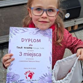 • w konkursie na najciekawsze lawendowe nakrycie głowy III miejsce zdobyła Tola S. z grupy „Fiołki” pod kierunkiem p. Kamili Kubowicz,