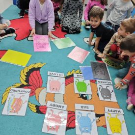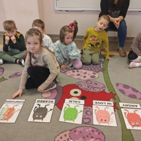 W każdej grupie odbyły się zajęcia w oparciu o książkę "Kolorowy Potwór” autorstwa Anny Llenas. To pięknie ilustrowana opowieść, która pomaga najmłodszym zrozumieć świat uczuć. Kolorowy Potwór miesza swoje emocje, a dzieci – wspólnie z bohaterem – odkrywają, czym jest radość, smutek, strach, spokój czy złość oraz jakie kolory im towarzyszą. Dzieci wspólnie odkrywały świat emocji – rozmawiały o tym, czym są uczucia, dlaczego są ważne i jak wpływają na nasze codzienne życie. Szczególna uwaga została poświęcona złości – jej przyczynom, temu, co dzieje się z naszym ciałem, gdy jesteśmy źli, oraz sposobom radzenia sobie z trudnymi emocjami.