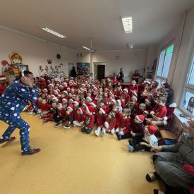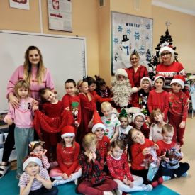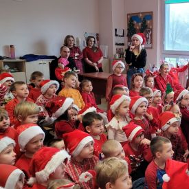 W dniu 04 grudnia przedszkolaki oglądały przedstawienie „ List do Świętego Mikołaja” w wykonaniu Agencji Artystycznej MAT-ART. Spektakl miał charakter świąteczny przygotowany z myślą o najmłodszych. Przedstawienie okraszone było dużą porcją dobrego humoru. Następnie każdą grupę odwiedził Święty Mikołaj. Dzieci zaprezentowały piosenki i wierszyki. Kolejnym punktem programu było wręczenie prezentów i pamiątkowe zdjęcie. Wizyta Świętego Mikołaja dostarczyła dzieciom wielu pozytywnych emocji i na długo pozostanie w ich pamięci.
