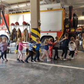 Dnia 8 października nasze przedszkolaki wybrały się na wyjątkową wycieczkę do Komendy Straży Pożarnej. Dzieci wzięły udział w zajęciach w Sali Edukacyjnej „OGNIK”, która przypomina typowe mieszkanie wraz ze sprzętem i wyposażeniem mogącym być źródłem zagrożeń.