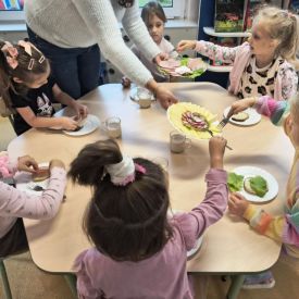 Wspólne przygotowywanie posiłku sprawiło dzieciom wiele radości i było doskonałą okazją do rozmowy o tym, dlaczego warto jeść zdrowo i jak ważne jest codzienne, pożywne śniadanie. Po zakończonej pracy wszystkie przedszkolaki z apetytem zjadły swoje kanapki, a na ich buziach gościł uśmiech i duma z samodzielnie przygotowanego posiłku.