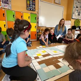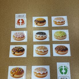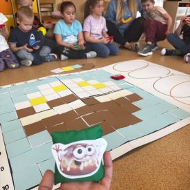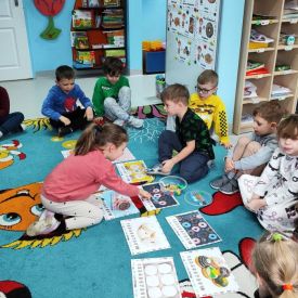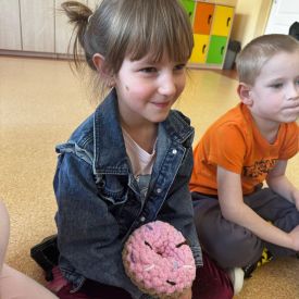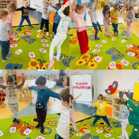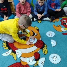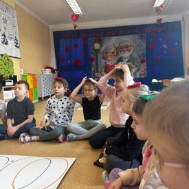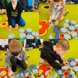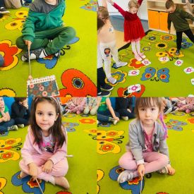 Podczas zajęć ruchowych pokonaliśmy wyznaczoną trasę, określając kierunki w przestrzeni. Na zakończenie wykonaliśmy „zakodowanego pączka” na macie do kodowania. Dzieci odczytywały i układały odpowiednie sekwencje, doskonaląc znajomość cyfr i liter oraz rozwijając umiejętność logicznego myślenia.