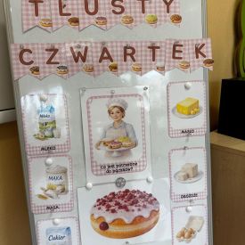 W naszym przedszkolu odbyły się zajęcia poświęcone Tłustemu Czwartkowi. Dzieci poznały tradycje tego wyjątkowego dnia oraz dowiedziały się, w jaki sposób powstają pączki. Z uwagą wysłuchały opowiadania. Rozmawialiśmy o składnikach potrzebnych do ich wykonania oraz o pracy cukiernika.