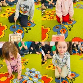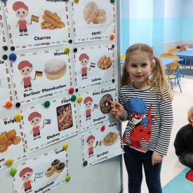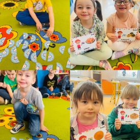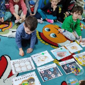 Nie zabrakło również aktywności matematycznych. Przedszkolaki liczyły pączki, wykonywały proste działania na dodawanie oraz określały prawidłowy wynik działania. Zadania utrwalały umiejętność liczenia oraz rozwijały logiczne myślenie.