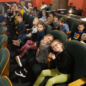 Dzieci z grup Bratki i Tulipany wybrały się na niezwykłą teatralną przygodę do Wojewódzkiego Domu Kultury w Kielcach. Spektakl „Niesamowita wycieczka, na każdym kroku bajeczka” okazał się prawdziwą ucztą dla wyobraźni! To była szalona podróż pełna humoru, muzyki i niespodzianek, w której mali widzowie mogli spotkać bohaterów znanych z twórczości Jana Brzechwy i Juliana Tuwima. Wiersze i postacie z klasyki polskiej literatury dziecięcej ożyły na scenie, przenosząc nas w barwny świat fantazji i zabawy.