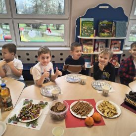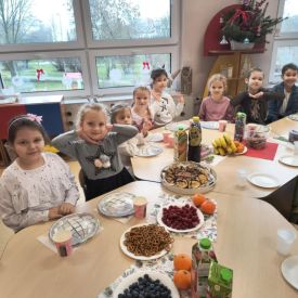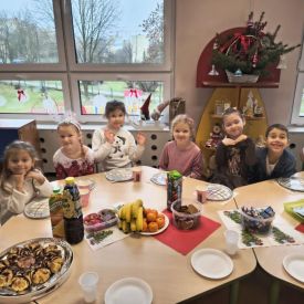 W Tulipanach i Bratkach odbyła się wyjątkowa wigilia grupowa. Był to czas pełen ciepła, radości i wspólnego przeżywania świątecznej atmosfery. Dzieci wraz z nauczycielami spędziły ten dzień razem, dzieląc się uśmiechem, życzliwością i dobrym słowem.
