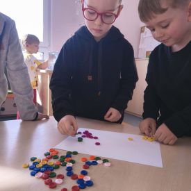 🔘 Guzikowa statystyka- segregowaliśmy kolorowe guziki według barw, a następnie przeliczaliśmy je, tworząc nasze pierwsze barwne wykresy.