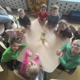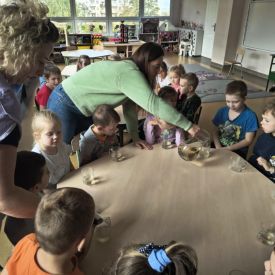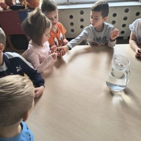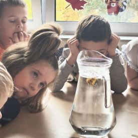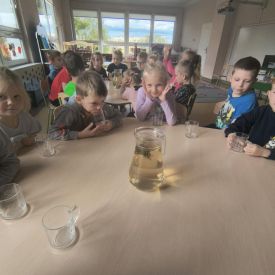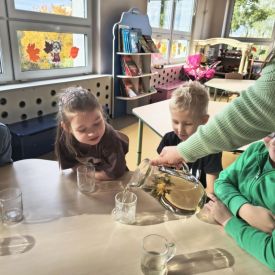Za oknem pada deszcz, a my – mimo wielu zadań i przygotowań do szkoły – znajdujemy czas, by na chwilę zwolnić tempo. Dziś w naszej sali pojawiła się kwitnąca herbata. Wspólnie z dziećmi obserwowaliśmy, jak w ciepłej wodzie powoli rozwija się kwiat, a delikatna muzyka relaksacyjna tworzyła spokojną, magiczną atmosferę.