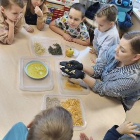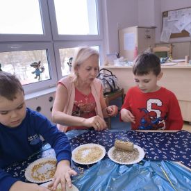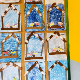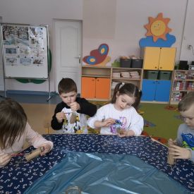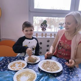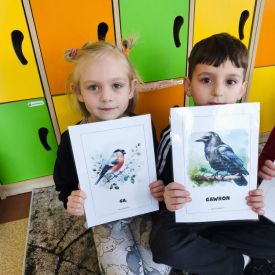 Podczas zajęć dzieci dowiedziały się, jak rozpoznawać poszczególne gatunki oraz co powinno znaleźć się w ptasiej stołówce, by było dla nich zdrowe i bezpieczne. Wiedzę teoretyczną łączyliśmy z zabawą – przeliczaliśmy naszych skrzydlatych gości oraz konstruowaliśmy pomysłowe karmniki z patyczków. Nie zabrakło też kreatywności podczas wykonywania prac plastycznych.