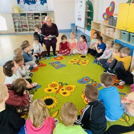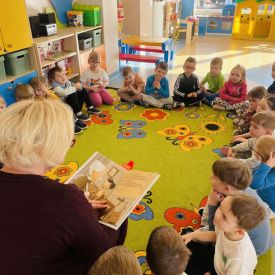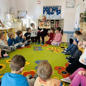 Pani Małgorzata przeczytała przedszkolakom bajkę pt.: "Pinokio". Dzieci z dużym zainteresowaniem słuchały opowieści o przygodach drewnianego pajacyka, z uwagą śledząc jego losy. Był to wyjątkowy czas, który sprzyjał rozwijaniu wyobraźni oraz kształtowaniu zainteresowania książkami oraz czytelnictwem.