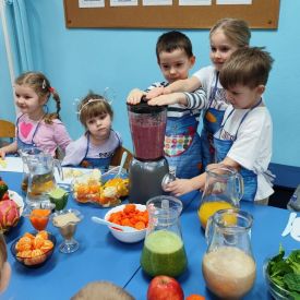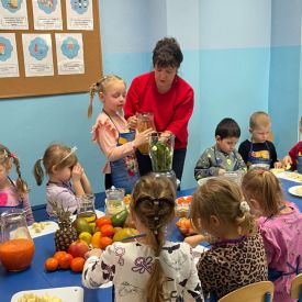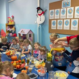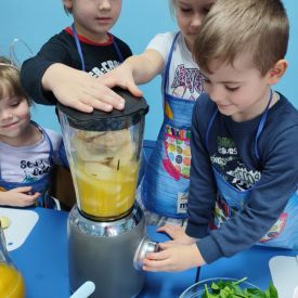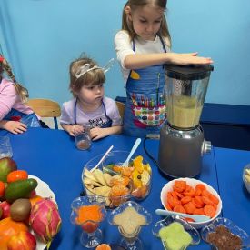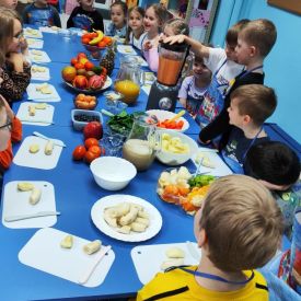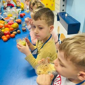 Podczas zajęć samodzielnie wybierały składniki, obserwowały proces blendowania oraz poznawały wartości odżywcze poszczególnych produktów. . Na stole pojawiły się soki: zielone, żółte, pomarańczowe i fioletowe — każdy o wyjątkowym smaku i zapachu.