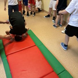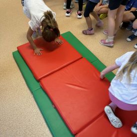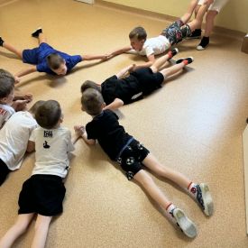 Grupa ,,Bratki" i ,,Tulipany" co tydzień uczestniczy w zajęciach sportowych prowadzonych przez p. Małgorzatę Karyś- trenerkę judo z Uczniowskiego Międzyszkolnego Klubu Sportowego Żak Kielce. Dzieci wykonują ćwiczenia ogólnorozwojowe z czuciem własnego ciała i przestrzeni, ćwiczenia wzmacniające obręcz barkową, ćwiczenia w podporach oraz różnego typu ćwiczenia zwinnościowe i rozwijające sprawność fizyczną. Na grudniowych zajęciach starszaki uczą się i doskonalą umiejętność przewrotu w przód. Zajęcia sportowe nie tylko poprawiają kondycję fizyczną, ale także hartują i sprawiają, że dzieci są radosne, gdyż mają mozliwość zaspokojenia potrzeby ruchu oraz współzawodnictwa.