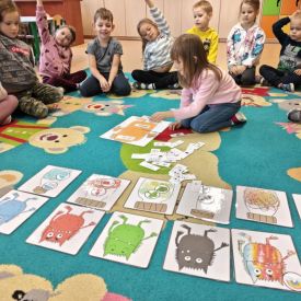 W każdej grupie odbyły się zajęcia w oparciu o książkę "Kolorowy Potwór” autorstwa Anny Llenas. To pięknie ilustrowana opowieść, która pomaga najmłodszym zrozumieć świat uczuć. Kolorowy Potwór miesza swoje emocje, a dzieci – wspólnie z bohaterem – odkrywają, czym jest radość, smutek, strach, spokój czy złość oraz jakie kolory im towarzyszą. Dzieci wspólnie odkrywały świat emocji – rozmawiały o tym, czym są uczucia, dlaczego są ważne i jak wpływają na nasze codzienne życie. Szczególna uwaga została poświęcona złości – jej przyczynom, temu, co dzieje się z naszym ciałem, gdy jesteśmy źli, oraz sposobom radzenia sobie z trudnymi emocjami.