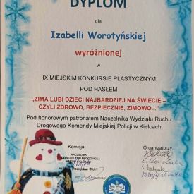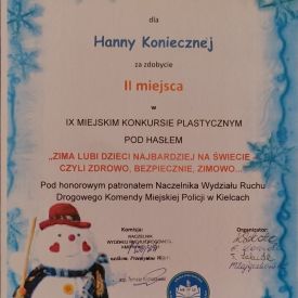W dniu 27 lutego w Szkole Podstawowej nr 12 w Kielcach odbyła się uroczysta Gala Finałowa konkursu plastycznego pt. „Zima lubi dzieci najbardziej na świecie – czyli zdrowo, bezpiecznie, zimowo…” pod honorowym patronatem Naczelnika Wydziału Ruchu Drogowego Komendy Miejskiej Policji w Kielcach.