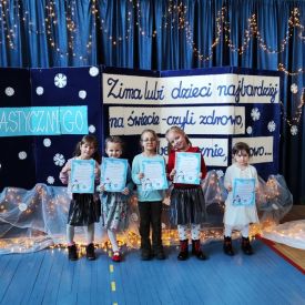 Dzieci przygotowały przepiękne, samodzielnie wykonane prace plastyczne przedstawiające zimowe krajobrazy oraz ulubione zabawy na śniegu. Za swoje zaangażowanie, pomysłowość i twórczość wszyscy uczestnicy otrzymali nagrody i dyplomy.