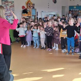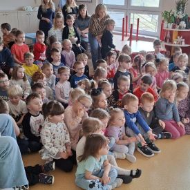 Podczas koncertu przedszkolaki uczyły się rozróżniać dźwięki wysokie i niskie, odkrywając, jak różnorodnie może brzmieć muzyka. Spotkanie było nie tylko piękną lekcją muzyki, ale także wspaniałym doświadczeniem artystycznym, które dostarczyło dzieciom wiele radości.