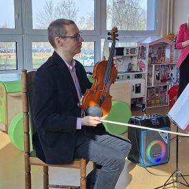 Dzieci miały okazję przenieść się w niezwykły świat dźwięków i poznać bliżej instrumenty smyczkowe, takie jak skrzypce oraz wiolonczelę. Muzycy zaprezentowali brzmienie obu instrumentów, opowiadając o ich budowie oraz sposobie wydobywania dźwięku.
