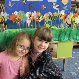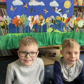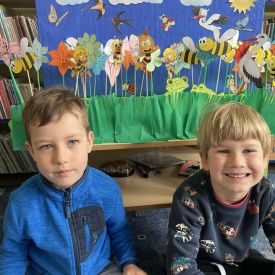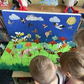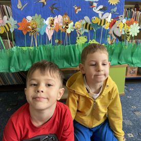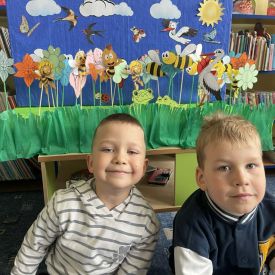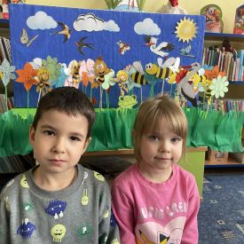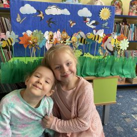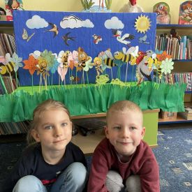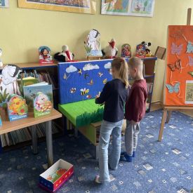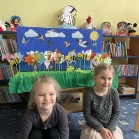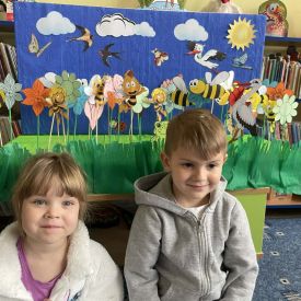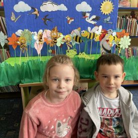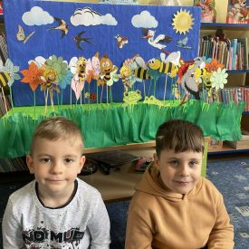 Dzieci z grupy „Różyczki” wybrały się do Miejskiej Biblioteki Publicznej im. Jerzego Pilcha, Filia nr 5, gdzie uczestniczyły w ciekawych zajęciach o tematyce wiosennej łąki.
