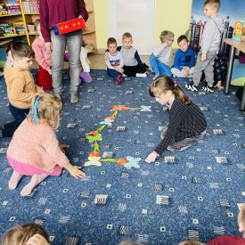 Wizyta w bibliotece była również doskonałą okazją do rozbudzania zainteresowań czytelniczych wśród dzieci oraz do pokazania, że książki mogą być źródłem wielu ciekawych historii i inspiracji do wspólnej zabawy i twórczych działań.