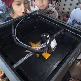 Spotkanie rozpoczęło się wprowadzeniem i opowieścią o tym, czym właściwie jest drukarka 3D oraz do czego można ją wykorzystać. Rodzice w przystępny sposób porównali jej działanie do pracy zwykłej drukarki, pokazując, że zamiast tuszu używa się specjalnego tworzywa, które pod wpływem wysokiej temperatury topi się i warstwa po warstwie buduje trójwymiarowy przedmiot. Dzieci mogły zobaczyć, jak wyglądają różne rodzaje materiałów oraz jak przebiega cały proces od projektu do gotowego wydruku.