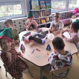 W naszej grupie odbyły się wyjątkowe, świąteczne warsztaty prowadzone przez rodziców Tymonka – mamę i tatę – którzy odwiedzili nas wraz z jego starszym bratem Kajetanem. Rodzina przygotowała dla dzieci niezwykle ciekawe i profesjonalnie poprowadzone zajęcia, podczas których mali uczestnicy mogli odkryć fascynujący świat druku 3D.