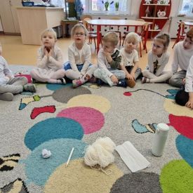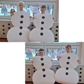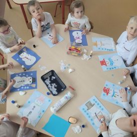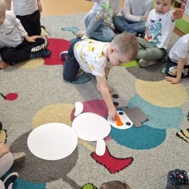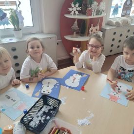 Podczas zajęć dzieci uczestniczyły w zabawach sensorycznych z wykorzystaniem białych materiałów, a także brały udział w zabawach ruchowych i muzycznych inspirowanych zimą. W części plastycznej przedszkolaki rozwijały sprawność manualną, tworząc prace związane z tematyką śniegu i bałwanków.