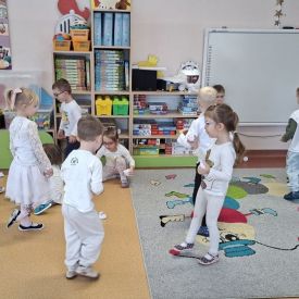 Tego dnia przedszkolaki przyszły ubrane na biało przynosząc ze sobą w tym samym kolorze maskotkę tworząc spójną, zimową atmosferę sprzyjającą wspólnemu przeżywaniu i działaniu. Dzieci poznawały kolor biały jako symbol zimy, śniegu. Poprzez rozmowę kierowaną oraz opowiadanie edukacyjne rozwijały wrażliwość emocjonalną, uczyły się nazywać swoje odczucia oraz dostrzegać emocje bohaterów.