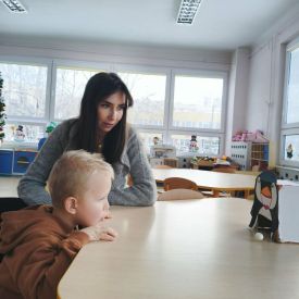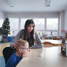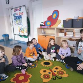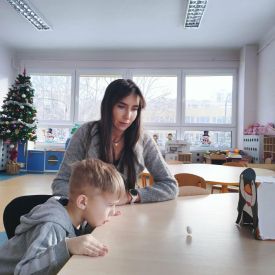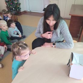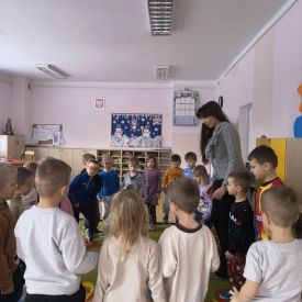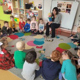 W naszym przedszkolu odbyły się wyjątkowe zajęcia prowadzone przez panią Dagmarę neurologopedę z Poradni Psychologiczno-Pedagogicznej. Spotkanie przebiegało w zimowej, wesołej tematyce pingwinów, co dodatkowo motywowało dzieci do aktywnego udziału. Podczas zajęć przedszkolaki wykonywały różnorodne ćwiczenia wspierające rozwój mowy i komunikacji. Dzieci trenowały prawidłowy oddech, w tym wydłużanie fazy wydechowej, dmuchając w styropianową kulkę do pingwinka. Nie zabrakło także ćwiczeń aparatu artykulacyjnego, które wykonywane były z humorem gdzie dzieci naśladowały odgłosy i ruchy dziobków pingwinów. Kolejnym elementem zajęć było czytanie całościowe, które pomaga rozwijać umiejętność rozpoznawania wyrazów oraz koncentrację. Dzieci ćwiczyły także pamięć słuchową, powtarzając wierszyk o małym, wędrującym pingwinku. Na zakończenie przedszkolaki wykonywały zadania rozwijające koordynację wzrokowo-ruchową, łącząc w pary pingwinie obrazki i pokonując lodową ścieżkę zadaniową.