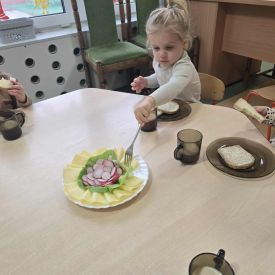 Wspólne przygotowywanie posiłku sprawiło dzieciom wiele radości i było doskonałą okazją do rozmowy o tym, dlaczego warto jeść zdrowo i jak ważne jest codzienne, pożywne śniadanie. Po zakończonej pracy wszystkie przedszkolaki z apetytem zjadły swoje kanapki, a na ich buziach gościł uśmiech i duma z samodzielnie przygotowanego posiłku.