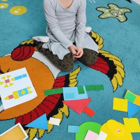 W ramach realizacji innowacji ,,Matematyczne królestwo zmysłów" dzieci wzięły udział w zajęciach edukacyjnych, których celem było rozpoznawanie i utrwalanie figur geometrycznych. Zajęcia rozpoczęły się od wysłuchania opowiadania pt. „Wyprawa do miasteczka figur”, które przeniosło przedszkolaków do magicznej krainy pełnej kół, kwadratów, trójkątów i prostokątów.