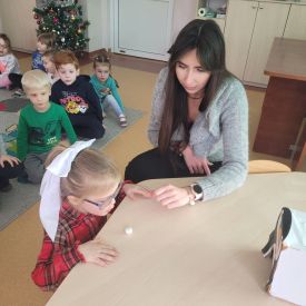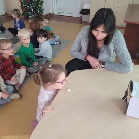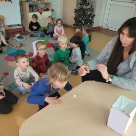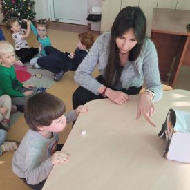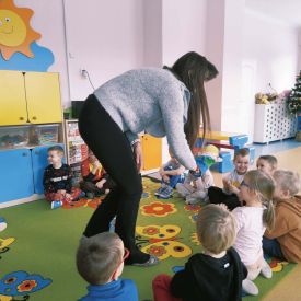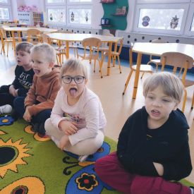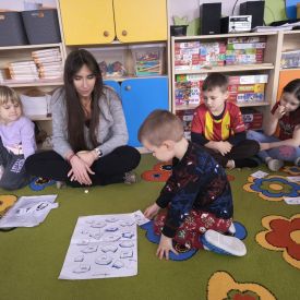 W naszym przedszkolu odbyły się wyjątkowe zajęcia prowadzone przez panią Dagmarę neurologopedę z Poradni Psychologiczno-Pedagogicznej. Spotkanie przebiegało w zimowej, wesołej tematyce pingwinów, co dodatkowo motywowało dzieci do aktywnego udziału. Podczas zajęć przedszkolaki wykonywały różnorodne ćwiczenia wspierające rozwój mowy i komunikacji. Dzieci trenowały prawidłowy oddech, w tym wydłużanie fazy wydechowej, dmuchając w styropianową kulkę do pingwinka. Nie zabrakło także ćwiczeń aparatu artykulacyjnego, które wykonywane były z humorem, gdzie dzieci naśladowały odgłosy i ruchy dziobków pingwinów. Kolejnym elementem zajęć było czytanie całościowe, które pomaga rozwijać umiejętność rozpoznawania wyrazów oraz koncentrację. Dzieci ćwiczyły także pamięć słuchową, powtarzając wierszyk o małym, wędrującym pingwinku. Na zakończenie przedszkolaki wykonywały zadania rozwijające koordynację wzrokowo-ruchową, łącząc w pary pingwinie obrazki i pokonując lodową ścieżkę zadaniową.