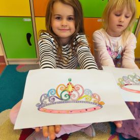 Podczas zajęć mieliśmy okazję poznać inny kraj – Wielką Brytanię. Dowiedzieliśmy się, gdzie leży, jak wygląda flaga, kim jest król. Rozmawialiśmy o brytyjskich zwyczajach, a na zakończenie każdy przedszkolak wykonał własną królewską koronę, która błyszczała niczym prawdziwy diadem! Zwieńczeniem dnia była wizyta na poczcie oraz wspólne wysłanie kartki do Króla Karola III.