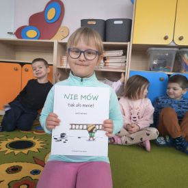 W ramach realizacji projektu edukacyjnego „Jestem OK” dzieci z grupy Niezapominajki uczestniczyły w zajęciach poświęconych kulturze słowa oraz właściwym sposobom komunikowania swoich uczuć. Punktem wyjścia do rozmów była książka „Nie mów tak do mnie” Lucíi Serrano, która w przystępny sposób pokazuje, jak ważne jest używanie miłych, wspierających słów w codziennych sytuacjach. Po wysłuchaniu opowiadania dzieci dzieliły się swoimi spostrzeżeniami na temat uczuć bohaterów oraz zastanawiały się, jak można reagować, gdy ktoś mówi do nas w sposób niemiły. Następnie przedszkolaki odgrywały krótkie scenki dramowe, dzięki którym mogły przećwiczyć właściwe zachowania, naukę asertywności i dbania o swoje granice. W części plastycznej dzieci wykonały własne tarcze z hasłami ,,STOP''; ,,Nie mów tak do mnie'' , które mają przypominać im o prawie do szacunku i o tym, że każdy z nas jest ważny i zasługuje na dobre słowo.