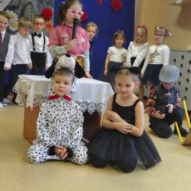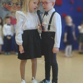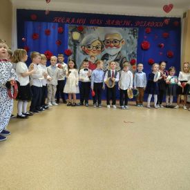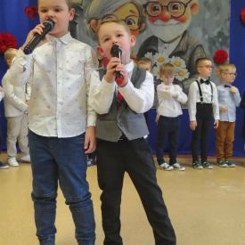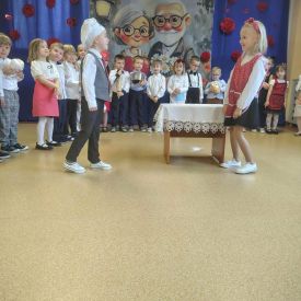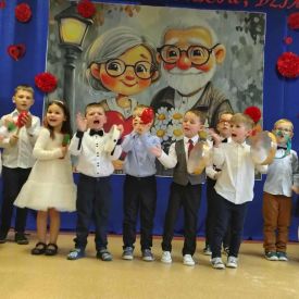 W grupie „Niezapominajki” zapanowała niezwykła, rodzinna atmosfera. Wszystko to za sprawą naszych wyjątkowych gości Babć i Dziadków, dla których wnuczęta przygotowały pełen radości i wzruszeń program artystyczny. Nasze „Niezapominajki” z ogromnym przejęciem zaprezentowały swoje liczne talenty. Program był niezwykle bogaty- były tańce i piosenki, które wywołały szczery uśmiech na każdej twarzy, wzruszające wierszyki, recytowane z wielką odwagą i sercem oraz zabawny skecz o dziadku, któremu w tajemniczych okolicznościach „wyparował” rosołek. Salwy śmiechu na sali były najlepszą recenzją tego występu! Prawdziwą atrakcją uroczystości był występ Maryny i Jasia. Ta dwójka młodych kucharzy nie tylko pokazała na scenie, jak wspólnie gotować, ale na zakończenie zaprosiła wszystkich gości do wspólnej degustacji. Serwowane przez nich pyszne pierogi były niezwykle miłym i smacznym akcentem, który połączył pokolenia. Sukces tego przedstawienia to zasługa wielu osób. Składamy serdeczne podziękowania Rodzicom za nieocenioną pomoc w organizacji wydarzenia. Szczególne ukłony kierujemy w stronę taty Leona, który przygotował wyśmienite pierogi.