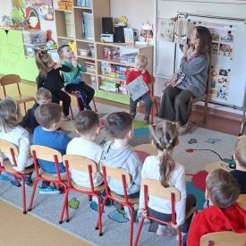 Dzieci z dużym zainteresowaniem słuchały opowieści. Spotkania przebiegły w bardzo miłej i radosnej atmosferze.