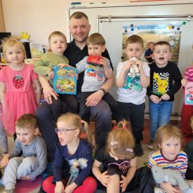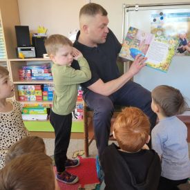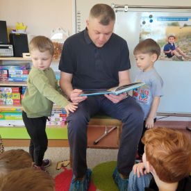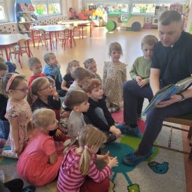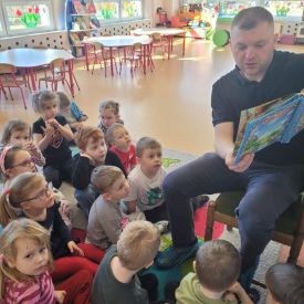 Przedszkolaki odwiedził również tata Artura, który przeczytał dzieciom znaną baśń „Złotowłosa i trzy niedźwiedzie”. To historia o ciekawej świata dziewczynce, która gubi się w lesie i trafia do domu zamieszkanego przez rodzinę niedźwiedzi – tatę, mamę oraz małego misia.