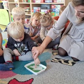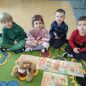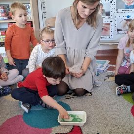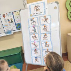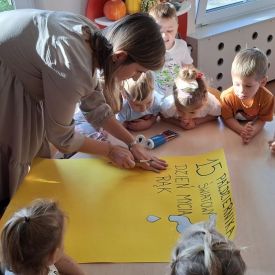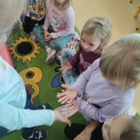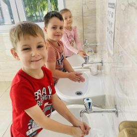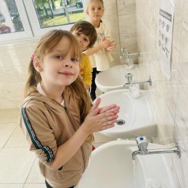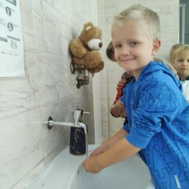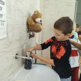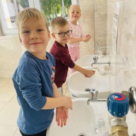 W naszym przedszkolu obchodziliśmy Światowy Dzień Mycia Rąk. Dzieci wysłuchały opowiadania o misiu Baltazarze, który dowiedział się w przedszkolu, jak ważne jest dbanie o czystość rąk, aby być zdrowym i pełnym energii. Przedszkolaki poznały prawidłowy schemat mycia rąk oraz dowiedziały się, dlaczego należy robić to dokładnie i regularnie. Podczas zajęć dzieci wykonały ciekawe doświadczenie z pieprzem, który symbolizował zarazki znajdujące się na naszych dłoniach. Wspólnie obserwowały, jak mydło „ucieka” od pieprzu, co pokazało, że mycie rąk skutecznie usuwa bakterie i brud. Na zakończenie każdy przedszkolak dokładnie umył ręce, używając mydła w kostce lub w płynie.