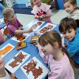 17 lutego w naszym przedszkolu obchodziliśmy Światowy Dzień Kota. Tego dnia dzieci zamieniły się w małe kotki. Nie zabrakło wesołych zabaw oraz „kocich” aktywności. Przedszkolaki poznały ciekawostki o kotach, dowiedziały się, jak należy dbać o zwierzęta domowe oraz w jaki sposób okazywać im troskę i szacunek. Rozmawialiśmy o kocich zwyczajach, ulubionych przysmakach oraz o tym, jak ważna jest odpowiedzialność za pupila. W trakcie zajęć dzieci uczestniczyły w zabawach ruchowych naśladujących kocie ruchy, wykonały prace plastyczne, brały udział w zabawach muzycznych i tematycznych. To był dzień pełen radości, uśmiechu i wspólnej zabawy.