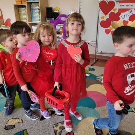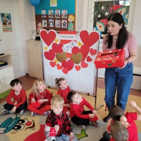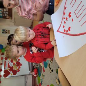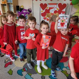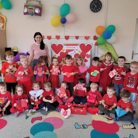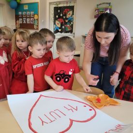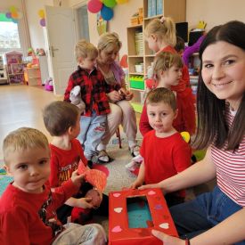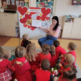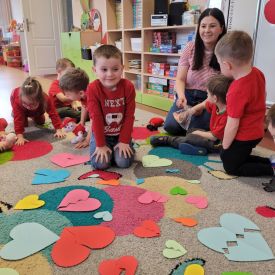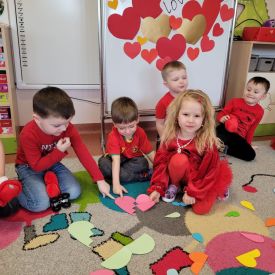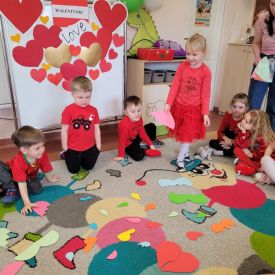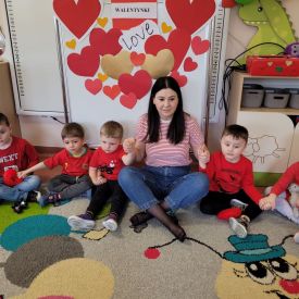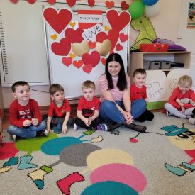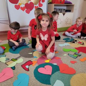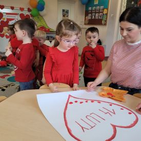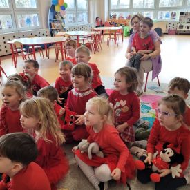 Dzień czerwony, czyli Walentynki w grupie „Fiołki”, upłynął w radosnej i pełnej ciepła atmosferze. Tego dnia odwiedziła nas mama Jasia, która wspólnie z dziećmi uczestniczyła w przygotowanych walentynkowych aktywnościach.