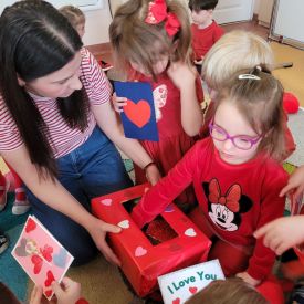 Dużo emocji wzbudziło także losowanie kartek walentynkowych przez wszystkie dzieci z grupy, które z radością obdarowywały się nawzajem miłymi gestami i uśmiechem.