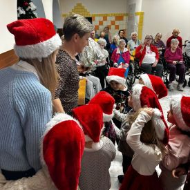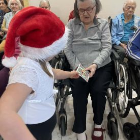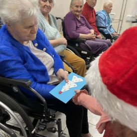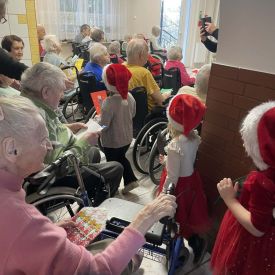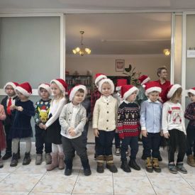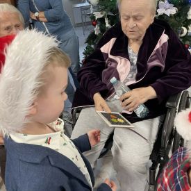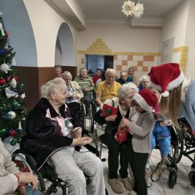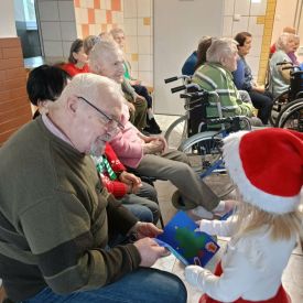 Szczególnym momentem akcji była wizyta dzieci z grupy Niezapominajki, które razem z rodzicami odwiedziły Dom Pomocy Społecznej. Mali artyści zaprezentowali krótki, świąteczny występ artystyczny, wprowadzając wszystkich w ciepłą, bożonarodzeniową atmosferę. Następnie dzieci wspólnie z seniorami zaśpiewały kolędy, dzieląc się radością, uśmiechem i serdecznością. Obecność przedszkolaków sprawiła seniorom ogromną radość i wzruszenie.