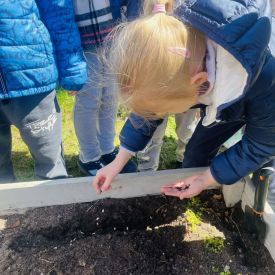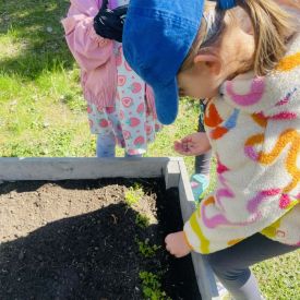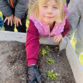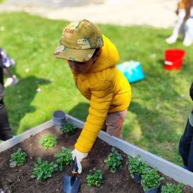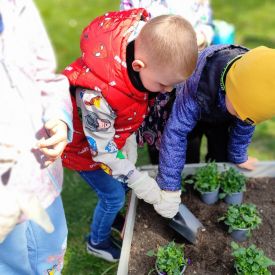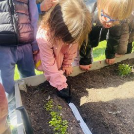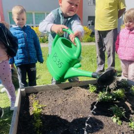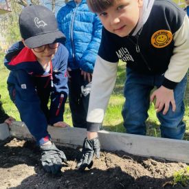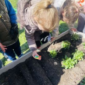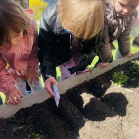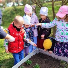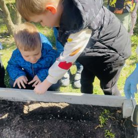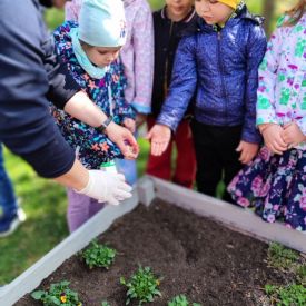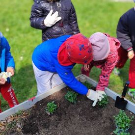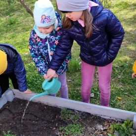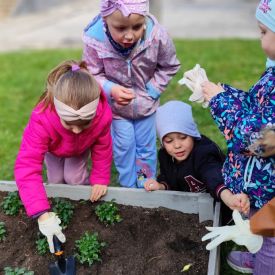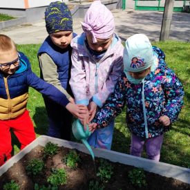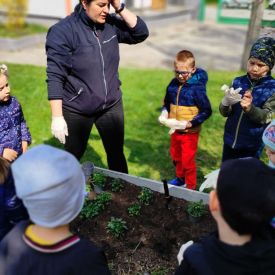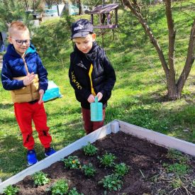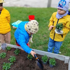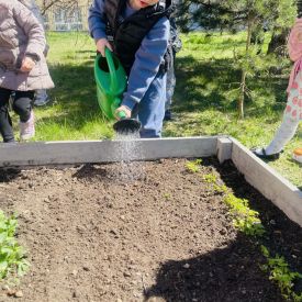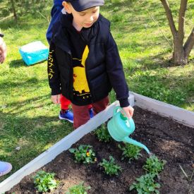 Przedszkolaki z ogromnym zaangażowaniem przygotowywały ziemię, uczyły się, jak prawidłowo sadzić rośliny oraz jak o nie dbać. Poznały także podstawowe zasady pielęgnacji roślin – dowiedziały się, jak ważne jest regularne podlewanie, dostęp do słońca oraz troska o ogród. Wspólna praca była nie tylko świetną zabawą, ale również cenną lekcją przyrody i odpowiedzialności.
