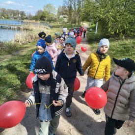 W ramach tej inicjatywy nasze przedszkolaki zorganizowały własny, symboliczny marsz – kolorowy przemarsz z balonami nad kieleckim zalewem. Każda z grup wyróżniała się innym kolorem balonów, co nie tylko wprowadziło radosną atmosferę, ale również podkreśliło ideę różnorodności i akceptacji.