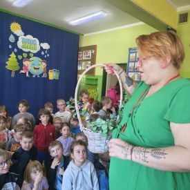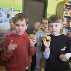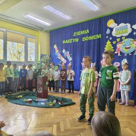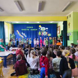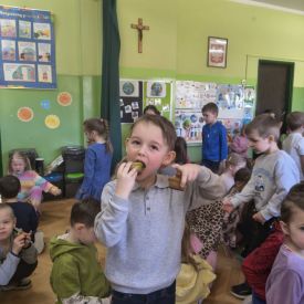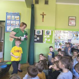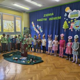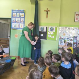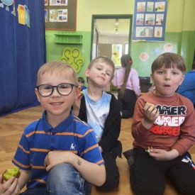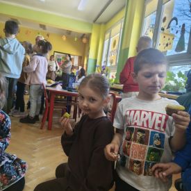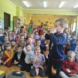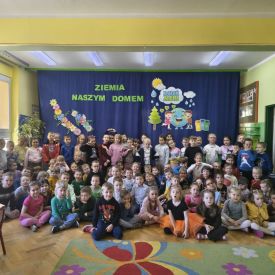 W minioną środę nasze przedszkolne grupy: Niezapominajki, Bratki oraz Tulipany- wybrały się na wyjątkowy, długi spacer. Słońce nam sprzyjało, a humory dopisywały od samego rana! Naszym celem było zaprzyjaźnione Przedszkole nr 42, gdzie zostaliśmy zaproszeni na niezwykłe wydarzenie. Obejrzeliśmy wiosenny występ pod tytułem „Ziemia naszym domem”. Mali artyści z wielkim przejęciem opowiadali o pięknie przyrody. Po spektaklu czekał na nas pyszny poczęstunek. Panie poczęstowały wszystkich zielonymi babeczkami, które smakowały wyśmienicie i idealnie pasowały do ekologicznego tematu spotkania.