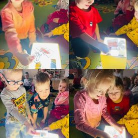 W ostatnim czasie w grupie niezapominajki oraz różyczki odbył się cykl zajęć z języka angielskiego o tematyce świątecznej, który wprowadził dzieci w radosny czas przygotowań do świąt. Podczas zajęć dzieci poznawały słownictwo związane ze świętami obchodzonymi na całym świecie, a także uczyły się prostych zwrotów i piosenek w języku angielskim. Przedszkolaki uczestniczyły w różnorodnych zabawach ruchowych, muzycznych i plastycznych, które pozwoliły im w naturalny sposób przyswajać nowe słowa oraz rozwijać ciekawość innych kultur i tradycji. Zajęcia sprzyjały nie tylko nauce języka, ale również rozwijaniu wyobraźni, współpracy w grupie oraz budowaniu świątecznej atmosfery.