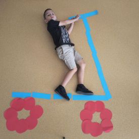- uczestniczyły w ćwiczeniach ruchowych rozwijających motorykę dużą pokonywały rowerową trasę z górki i pod górkę, przechodziły po kamykach oraz wąskiej ścieżce prowadzącej do przedszkola.