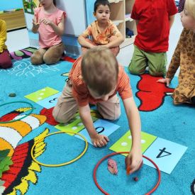 Dzieci z grupy „Różyczki” radośnie powitały nową porę roku. Tego dnia przyniosły do przedszkola dary jesieni – kolorowe liście, kasztany, żołędzie oraz szyszki. Przedszkolaki uczestniczyły w zajęciach i zabawach o tematyce jesiennej, dzięki którym zdobywały nowe wiadomości o rozpoczynającej się porze roku.