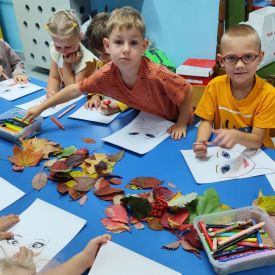 Dużo radości sprawiło dzieciom także wykonanie pracy plastycznej pt. „Jesień”, w której wykorzystały zgromadzone materiały. Był to dzień pełen wrażeń, radości i wspólnej zabawy. Dzięki tym aktywnościom dzieci lepiej poznały uroki jesieni, a nasza sala wzbogaciła się o piękne dekoracje, przypominające wszystkim o bogactwie i kolorach tej wyjątkowej pory roku.
