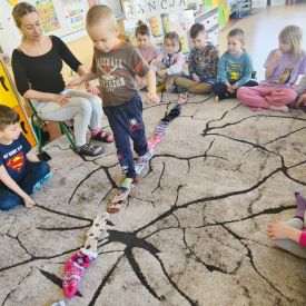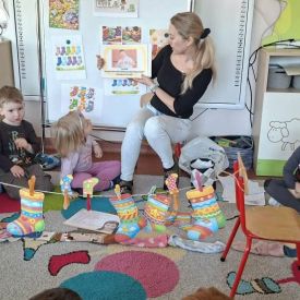 21 marca to data wyjątkowa nie tylko ze względu na pierwszy dzień wiosny, ale przede wszystkim dlatego, że nasze przedszkole wypełniło się kolorami solidarności. Obchodziliśmy Światowy Dzień Zespołu Downa, znany również jako Dzień Kolorowej Skarpetki. Była to dla nas przepiękna lekcja empatii, zrozumienia i radości z tego, że każdy z nas jest inny, a przez to wyjątkowy! Centralnym punktem dnia było spotkanie z Tosią bohaterką opowiadania „Kolorowe skarpetki”. Dzieci z zapartym tchem śledziły jej przygody i szybko zrozumiały najważniejszy przekaz: choć różnimy się od siebie, wszyscy zasługujemy na taki sam szacunek i miłość. Tosia pokazała nam, że zespół Downa w niczym nie przeszkadza w posiadaniu wielkiego, dobrego serca. Dowiedzieliśmy się, że Tosia zawsze służy pomocą i potrafi być wspaniałą przyjaciółką. To właśnie takie wartości chcemy pielęgnować w naszych grupach!